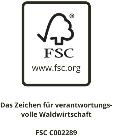 Wir sind FSC zertifiziert. ,,Forest Stewardship Council" steht für ein internationale nachhaltige Waldwirtschaft.